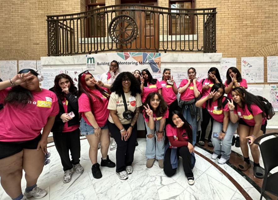 On Wednesday, April 1, Chica Project, a Mass Mentoring Partnership (MMP) grantee, had the chance to visit the Massachusetts State House as part of Youth Mentoring Day, hosted by MMP. Focused on highlighting the importance of mentorship, this unique opportunity allowed attendees to meet directly with state representatives and legislators, youth-serving programs, and other young people from all over Massachusetts. This event is one way that MMP advocates for increased state support and involvement in youth mentorship programs.